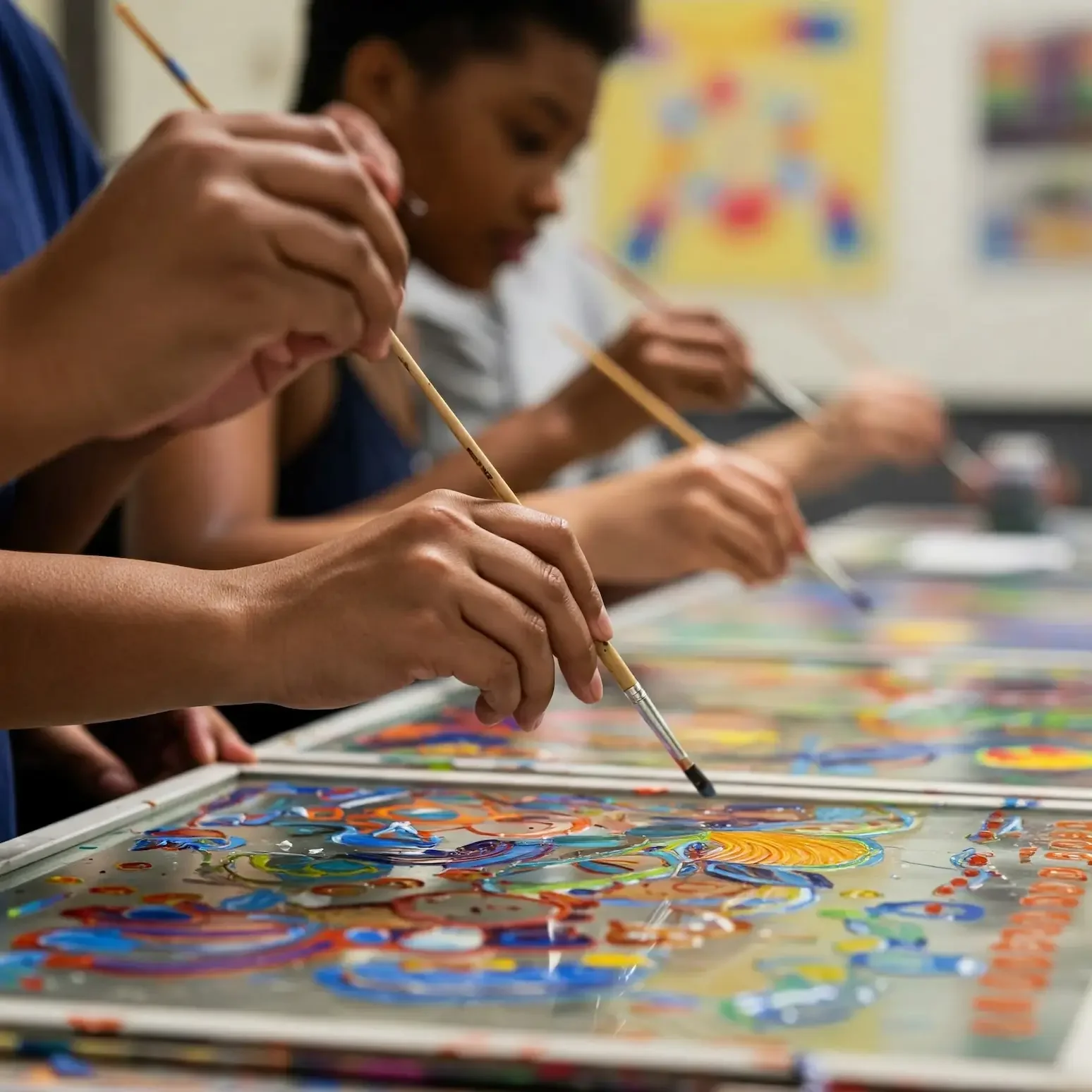 We offer a wide variety of hands-on art classes, from painting and drawing to pottery, sculpture, jewelry making, collage, mosaics, and glass painting. Our schedule also includes seasonal workshops like candle and soap making, along with rotating themed sessions to keep things fresh and inspiring.